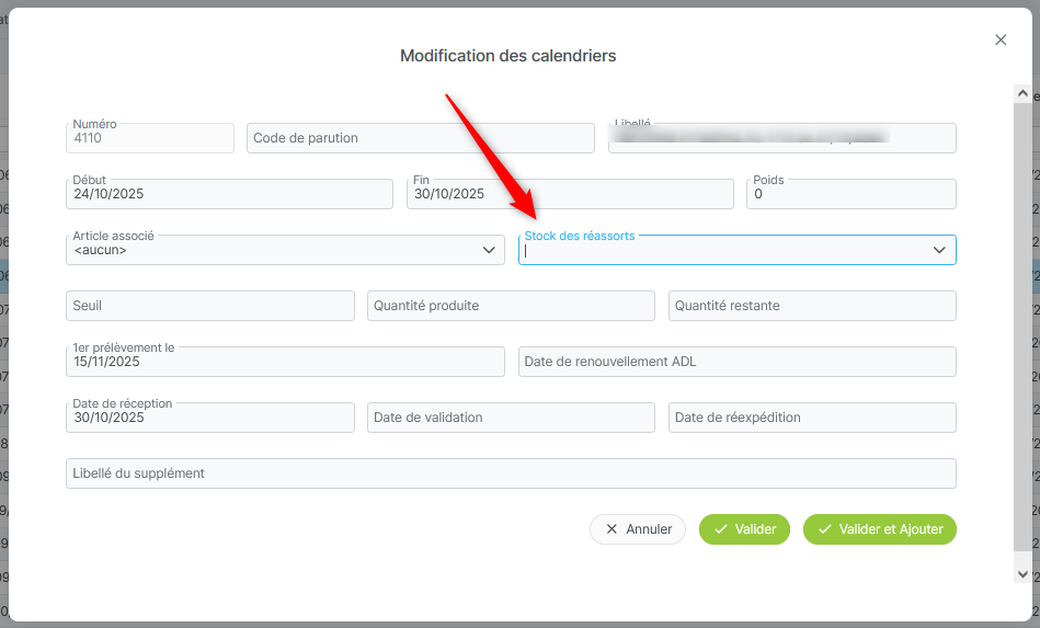 Le stock se définit au niveau du calendrier et du numéro de parution associé: