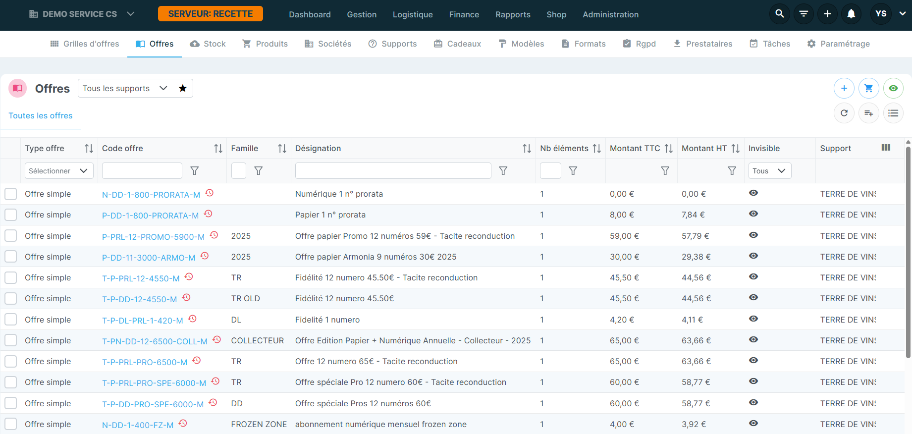 Ce bouton permet de dupliquer le paramétrage de l'offre sélectionnée