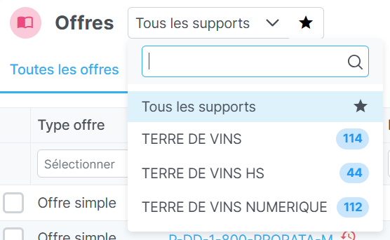 En sélectionnant une ou plusieurs offres, de nouvelles options s'affichent