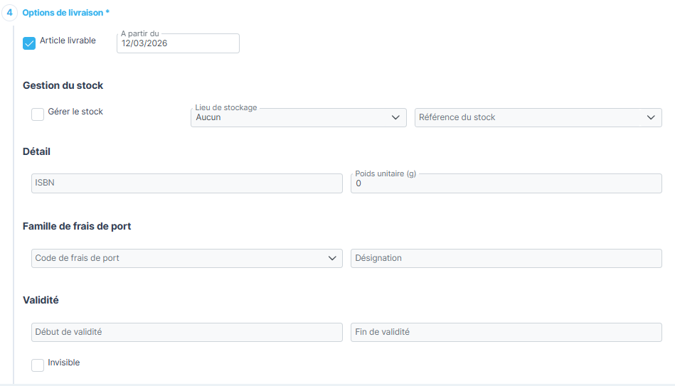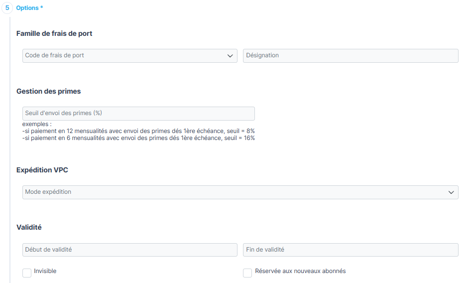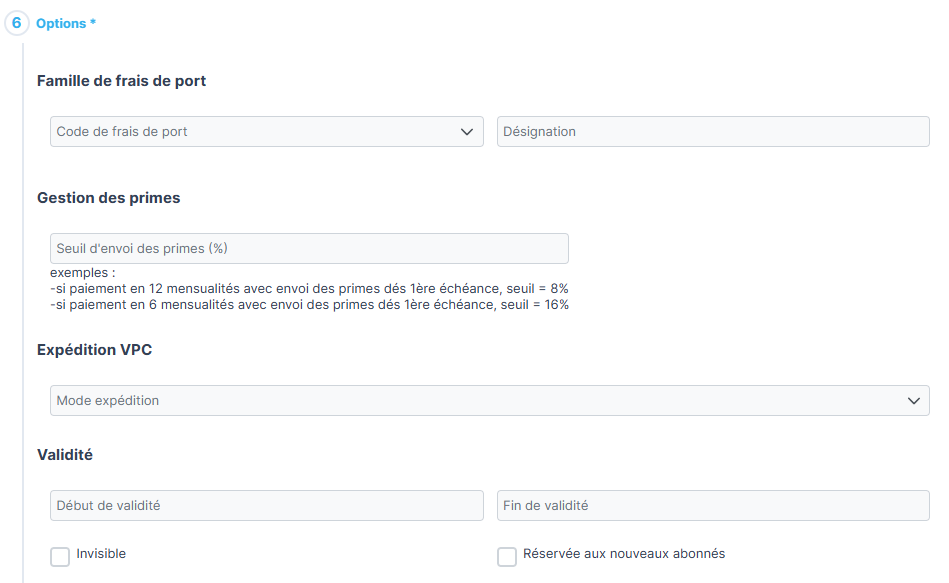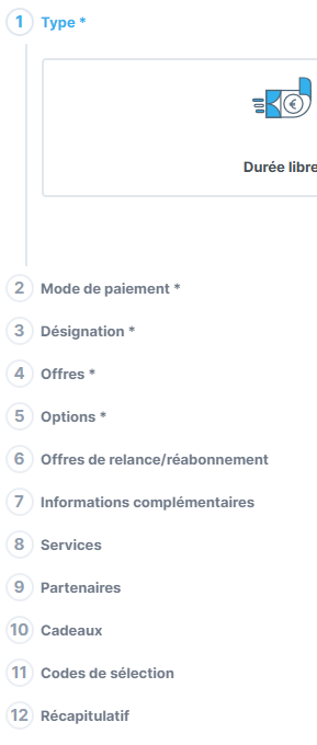 Le type limite le choix des offres d'abonnements simples à ce type et des articles uniques