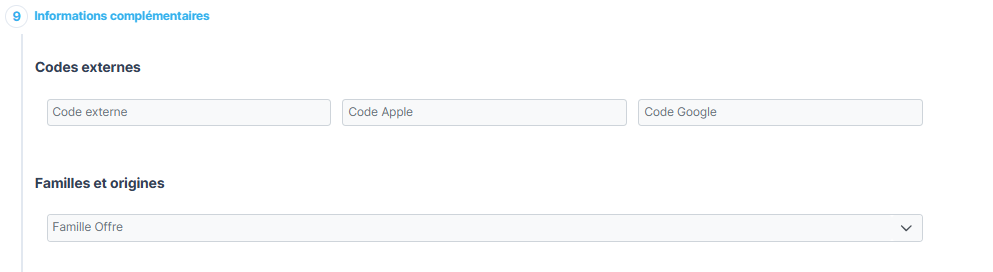 Code offre "Modifiable": Un code standard est renseigné avec les paramétrages
