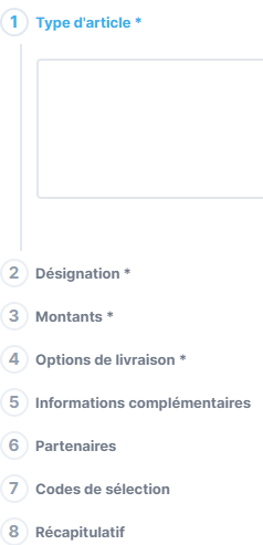 A noter : Il n'est possible de passer à l'étape suivante qu'après avoir renseigner les champs obligatoires