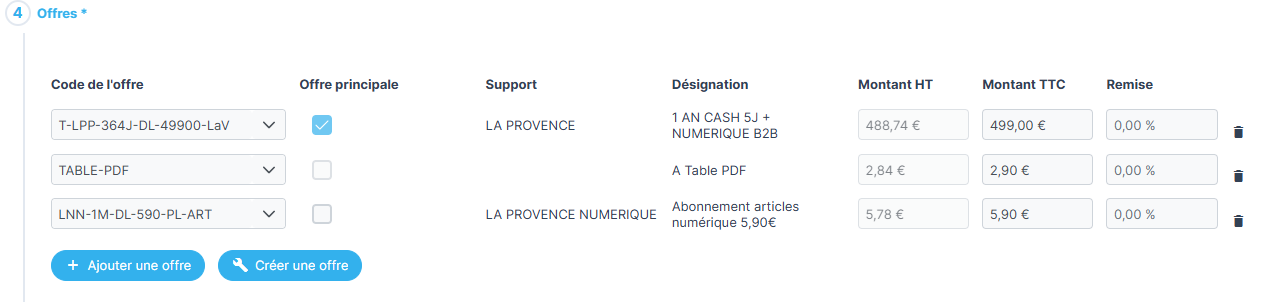 Offre couplée : Je souhaite créer une offre contenant plusieurs abonnements et/ou articles