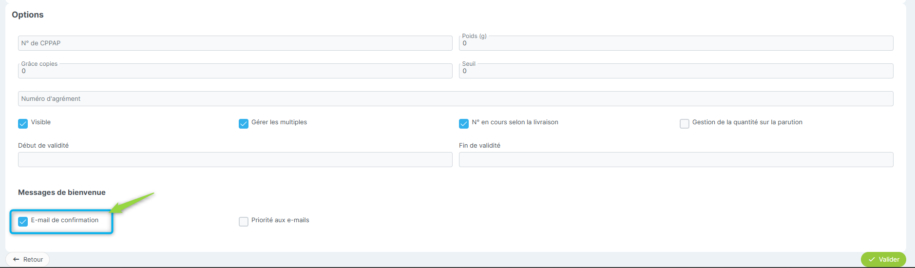 Comment activer l'envoi de l'e-mail de bienvenue ?